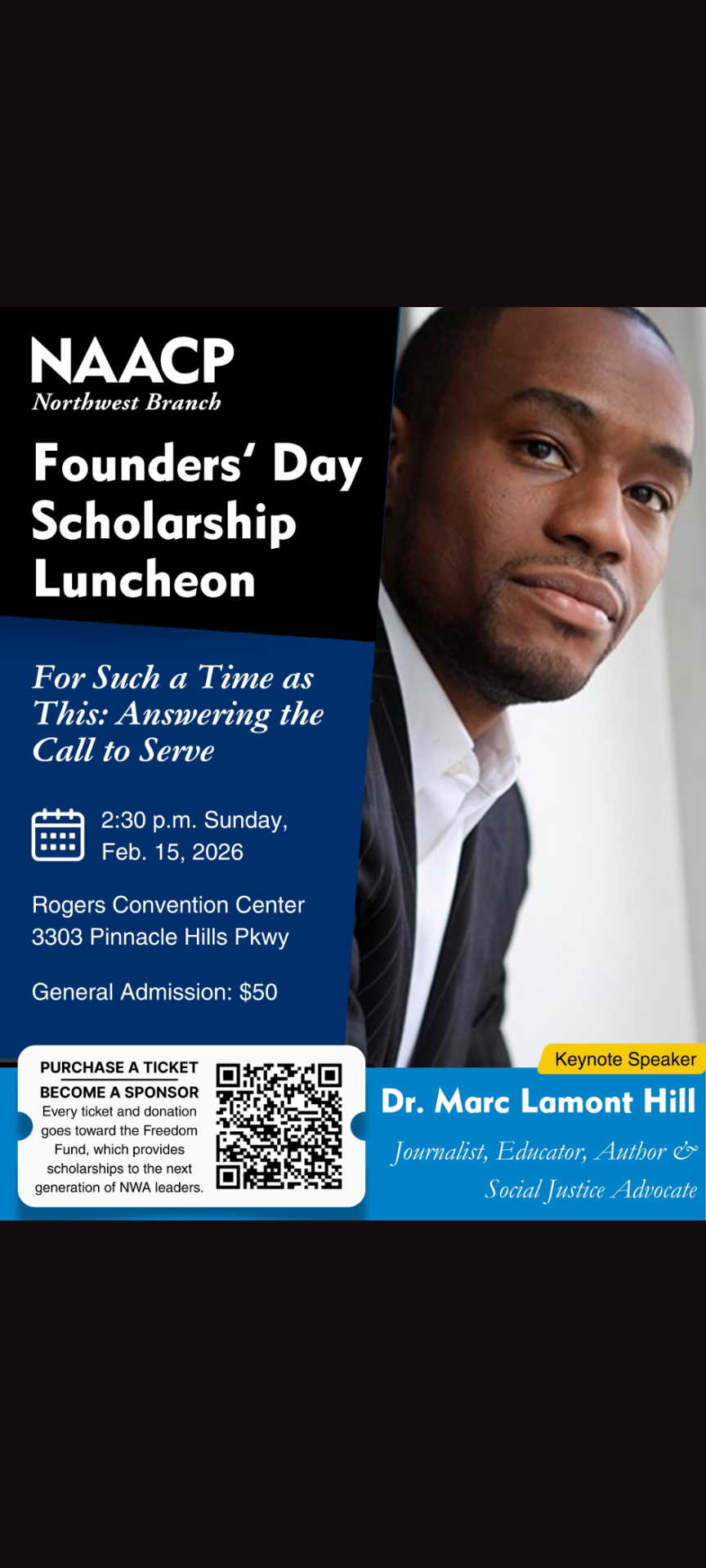3303 Pinnacle Hills PkwyJoin the NWA NAACP for our Founder's Day Freedom Fund Scholarship Luncheon as we celebrate the legacy of the NAACP and raise scholarship funds for deserving Northwest Arkansas students!
