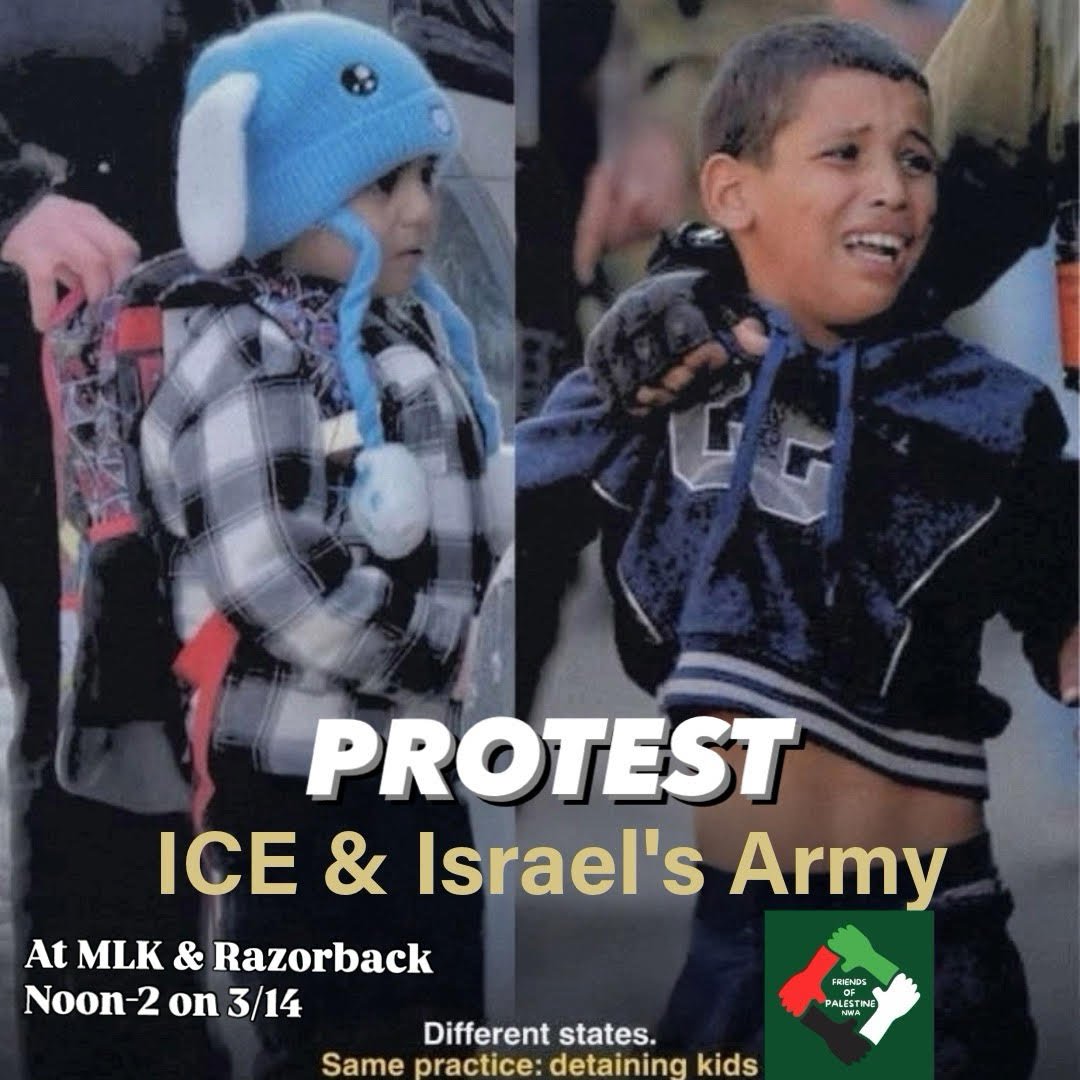 📍corner of MLK and Razorback, FayettevilleICE and the IOF share many objectives and tactics, and have even trained together. On 3/14 we will protest at the corner of MLK and Razorback, in solidarity with Immigrants and Palestinians. From Arkansas to Palestine, Occupation is a crime!