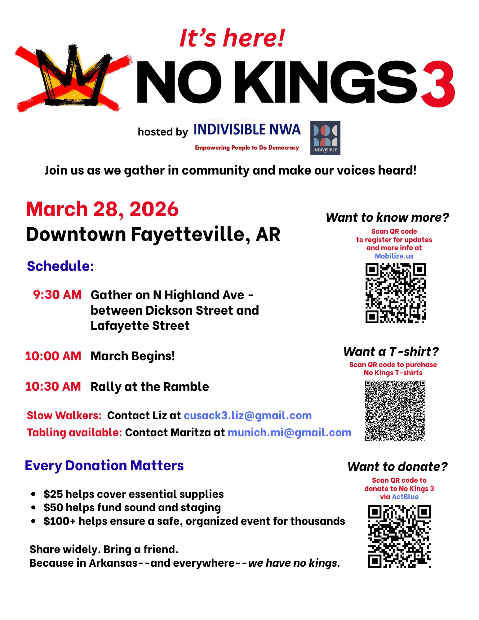 NO KINGS: Fayetteville AR (hosted by Indivisible NWA)